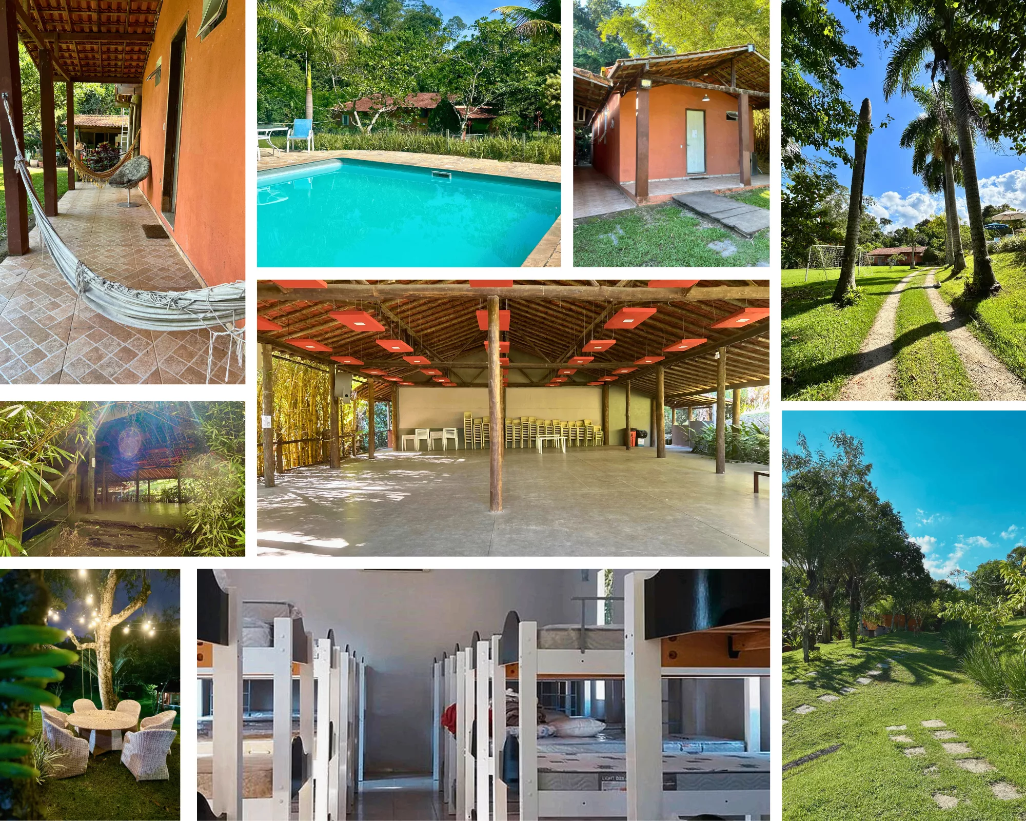 O retiro acontece em um espaço rodeado pela natureza — silencioso, inspirador e perfeito para a prática do Tai Chi. Um refúgio de tranquilidade, com áreas ao ar livre, ar puro e muito verde.